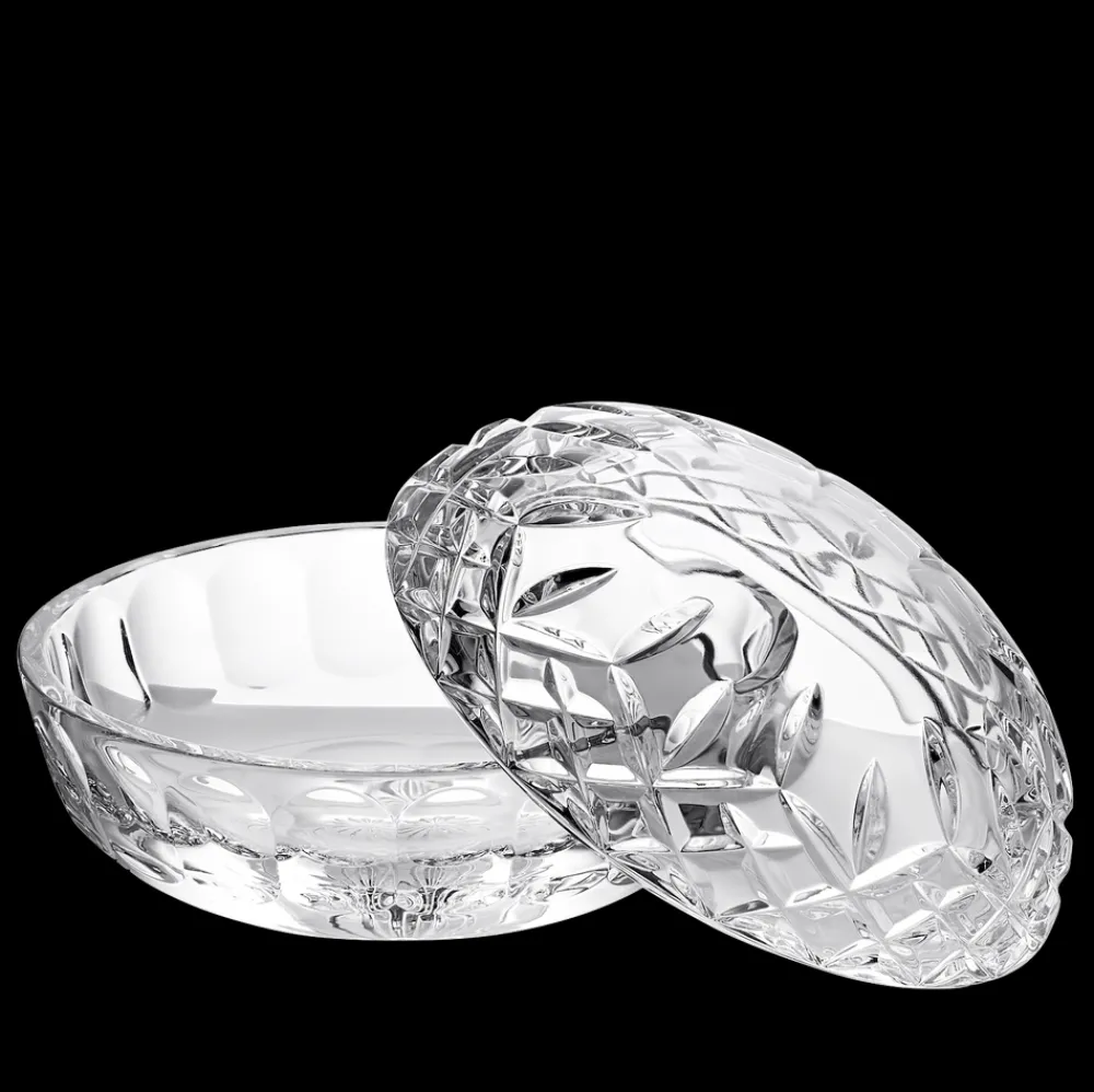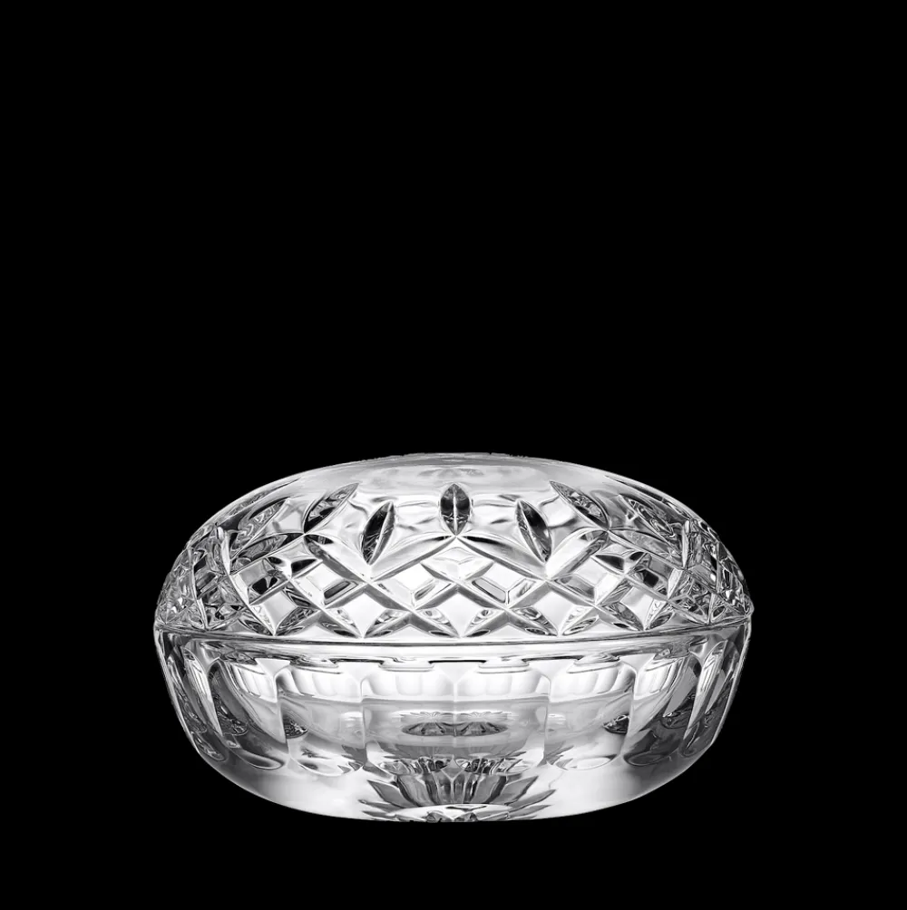 For over 200 years, Waterford has used its Irish heritage and artistry to produce hand-crafted luxury crystal. From this first sketch, through the process of molding and blowing the glass, to the hand-detailing and cutting, Waterford’s artisans apply a level of precision, care, and quality that has placed it among the world’s finest makers of crystal glasses, bowls, and objects for the home. The Lismore pattern, introduced by Miroslav Havel in 1952 and inspired by the remarkable gothic magnificence of Lismore Castle, has developed into one of Waterford’s most iconic collections. This covered box is expertly designed to infuse your home decor with a dash of romantic enchantment.