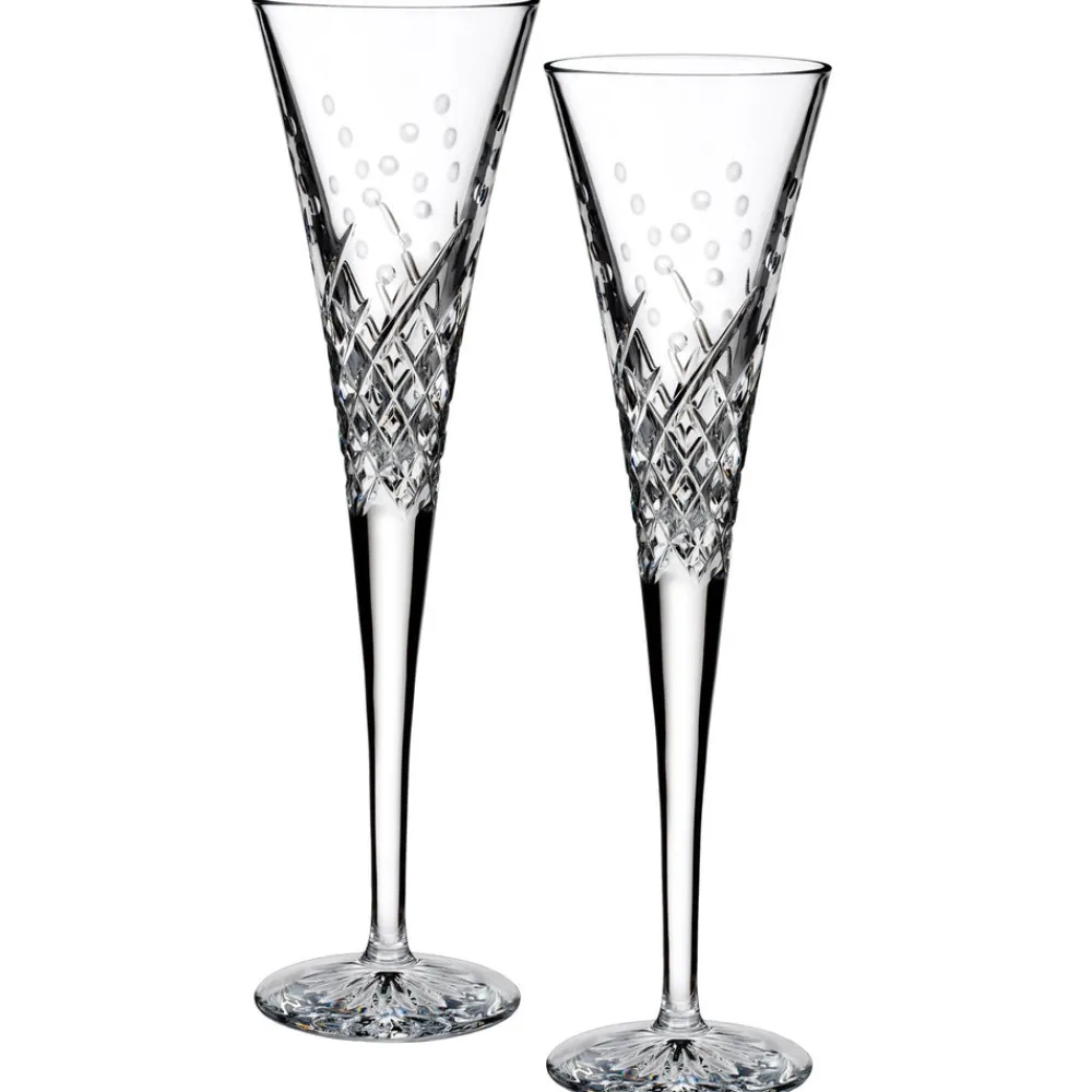 For over 200 years, Waterford has used its Irish heritage and artistry to produce hand-crafted luxury crystal. From this first sketch, through the process of molding and blowing the glass, to the hand-detailing and cutting, Waterford‚Äôs artisans apply a level of precision, care, and quality that has placed it among the world‚Äôs finest makers of crystal glasses, bowls, and objects for the home.¬†Crafted with a sleek, pulled stem and unique Waterford cutting pattern Waterford Wishes “Happy Celebrations” Toasting Flute Pair¬†provides¬†the perfect tool for toasting¬†the occasion, from the first clink until forever.
