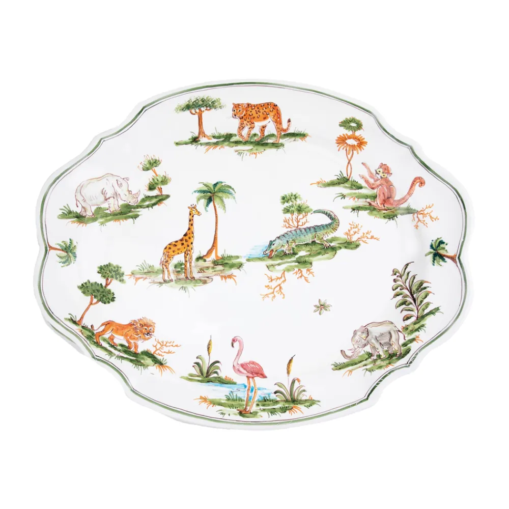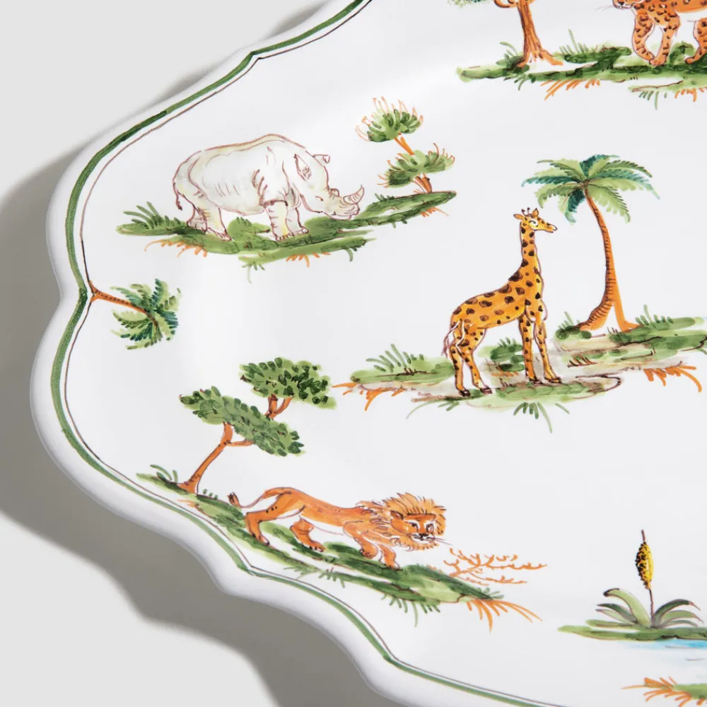Zoë de Givenchy’s French-made ceramics, linen, and flatware display refinement above all else. This, and a certain je ne sais quoi, were gleaned from the table of her husband’s uncle, Hubert de Givenchy, the legendary couturier, and one of the century’s finest hosts. Translating to “Animals of the Savanna,” the Animaux de la Savane Plat Bondil (Large Platter), handmade and hand-painted in Moustiers France (where the craft of faïence has been mastered for centuries), is a far cry from anything sauvage. Perfect for main courses, les plats principaux, or for a tabletop candle arrangement. Playful, but wildly sophisticated—don’t you think?