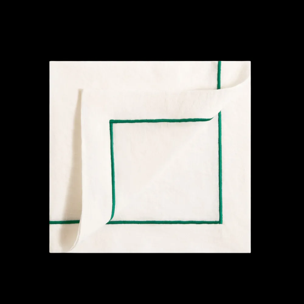 Zoë de Givenchy’s French-made ceramics, linen, and flatware display refinement above all else. This, and a certain je ne sais quoi, were gleaned from her husband’s uncle, Hubert de Givenchy, the legendary couturier, and one of the century’s finest hosts. Beautifully finished and large enough to cover a lap, the Soft Linen Cord Embroidered Dinner Napkin in White with Gazon elevates your table.