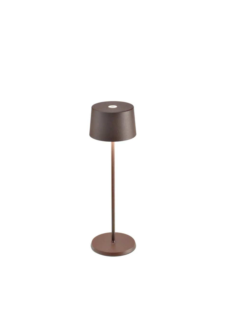 144-150 lumens, LED/CRI>80/120 volt/2.2W. Tunable white 2700-3000K. 14” height x 4.3” wide at top and bottom. IP20 (bodyIP65) rating protection. Die-cast painted aluminum body. Portable LED light. Induction charging base included. About 9 hours of illumination per charge. Touch-dimming with memory of most recent setting. Suitable for indoor or outdoor use (painted finishes only). Charging time about 6 hours.