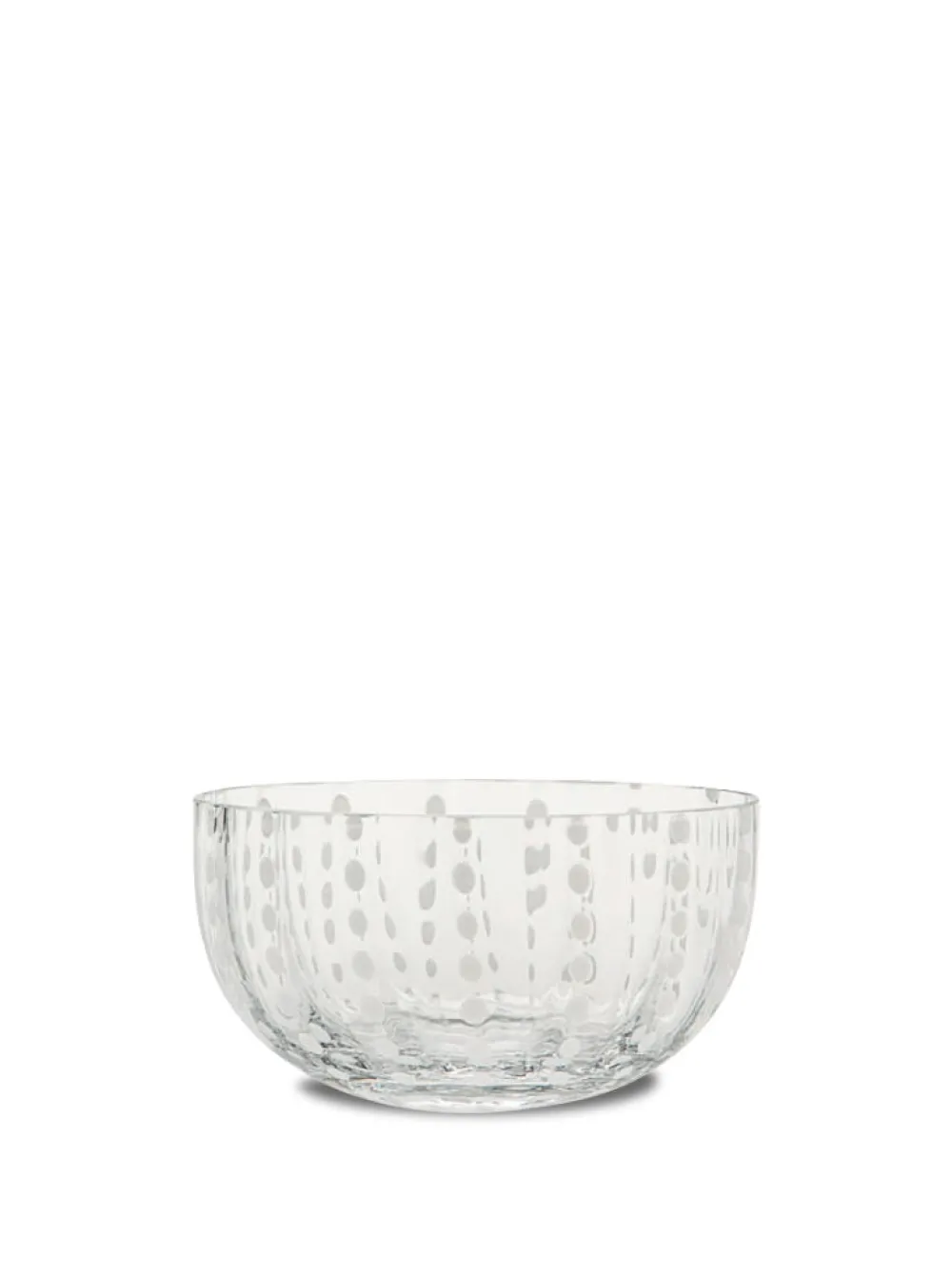 Zafferano lamps and glassware harness centuries of Murano craftsmanship, and hone it through the inimitable vision of Federico de Majo, giving these delicate, finely made pieces modern touches and endlessly stylish flair. Ideal for salads, sides, or desert service, the Perle Small Bowl, Set of 4 is crafted in carefully colored transparent glass. It features columns of carefully placed dots, which follow the bowl’s curvature, adding both textual and visual elements to its resting elegance.